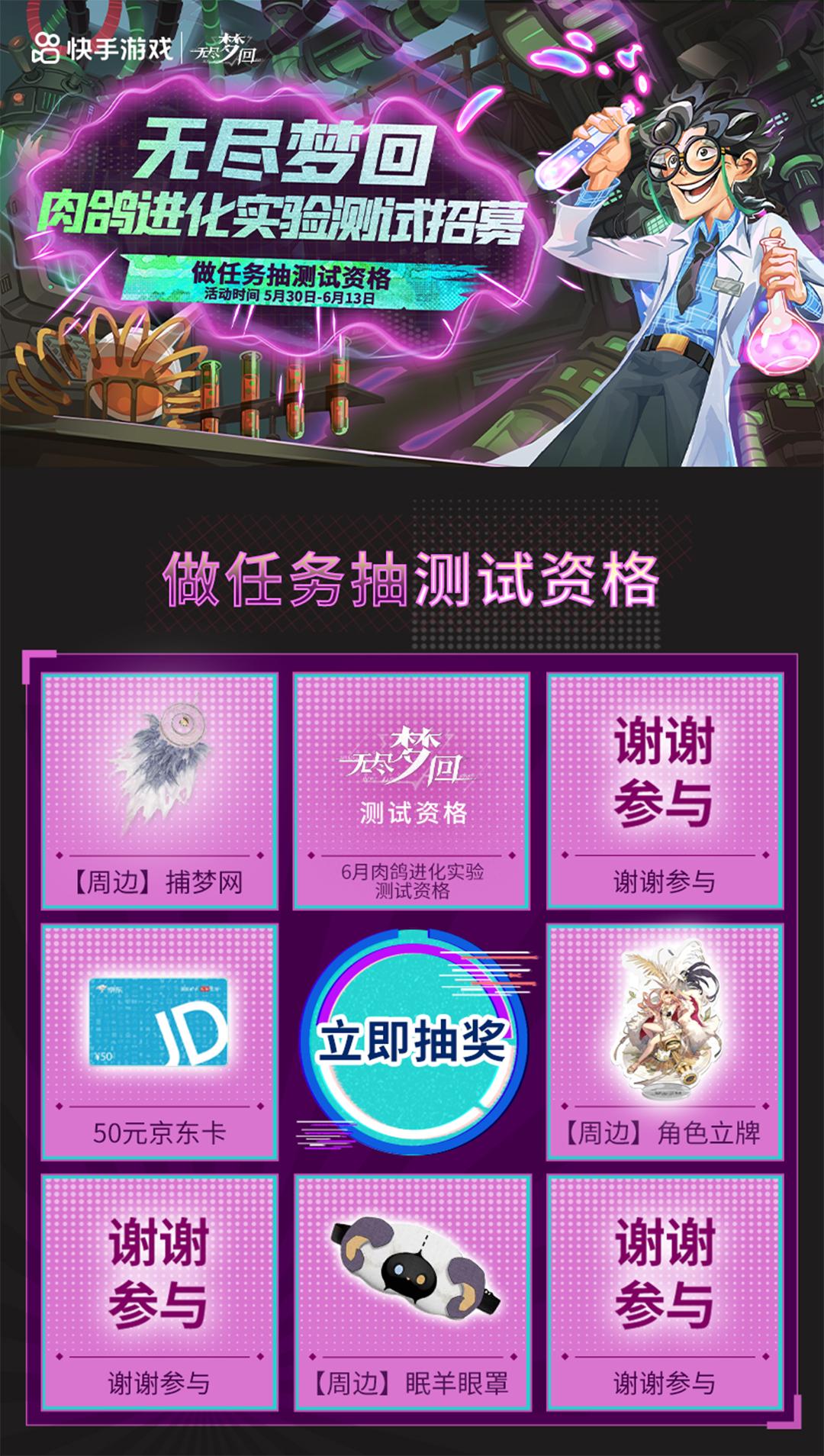 快手,捕梦者们前往快手参与页面获得,领取抽奖机会将有计划获得测试资格、京东卡、游戏周边等奖品。