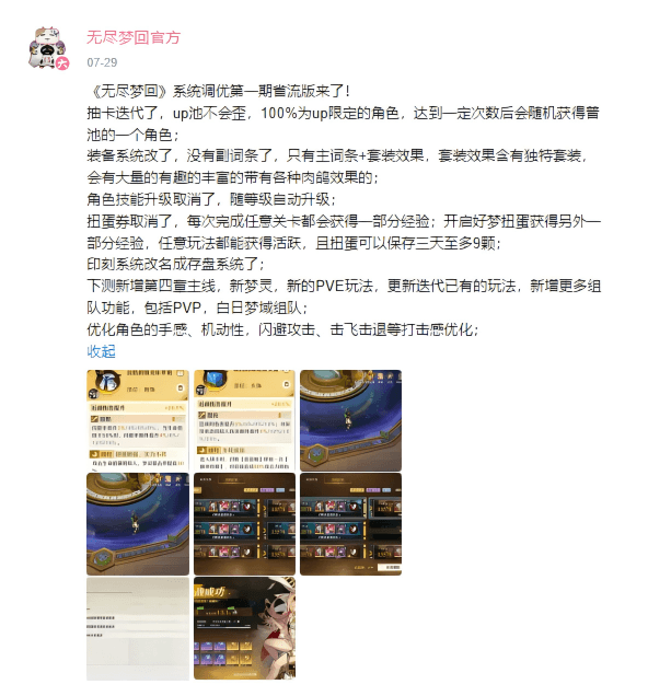 除了在游戏品质方面精益求精,《无尽梦回》的其他方面也在不断优化改进。在此之前,《无尽梦回》就已经推出了多项针对现有游戏弊端的改动。