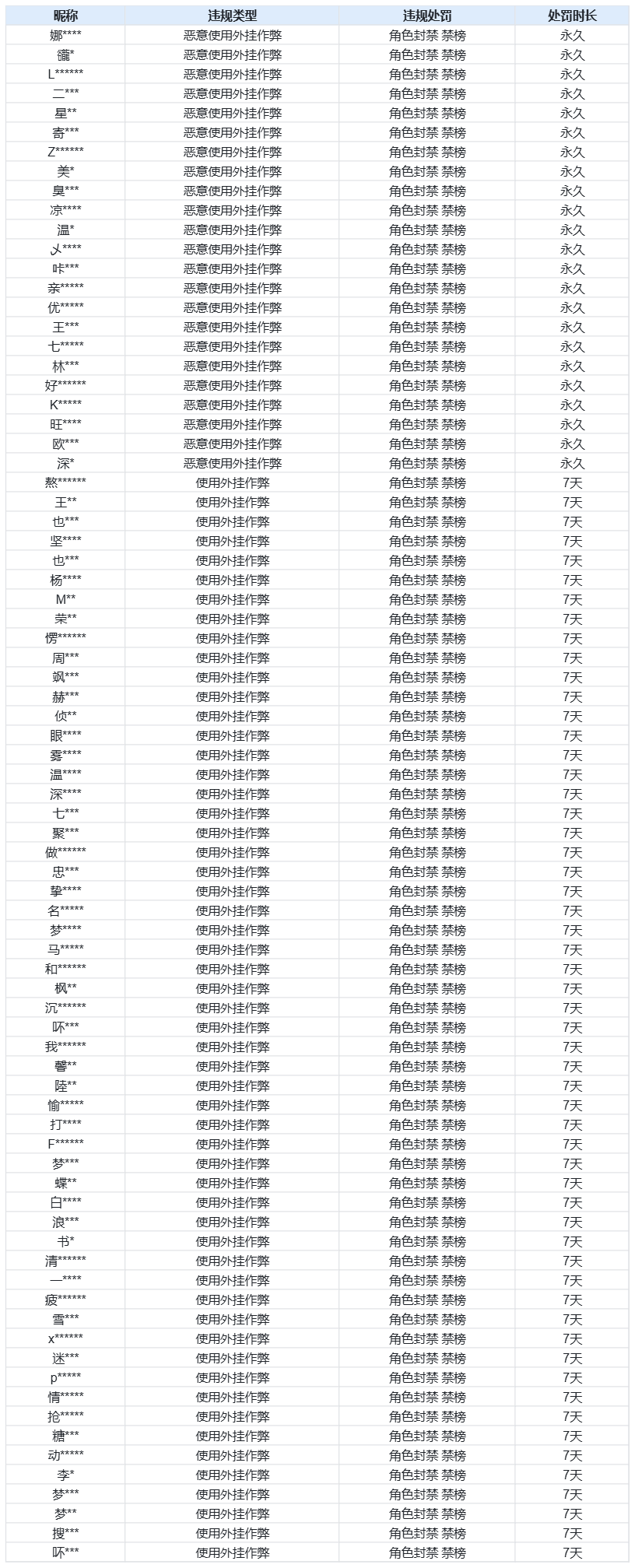 12月27日外挂打击及处罚名单公示