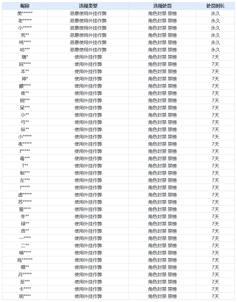 2月21日外挂打击及处罚名单公示